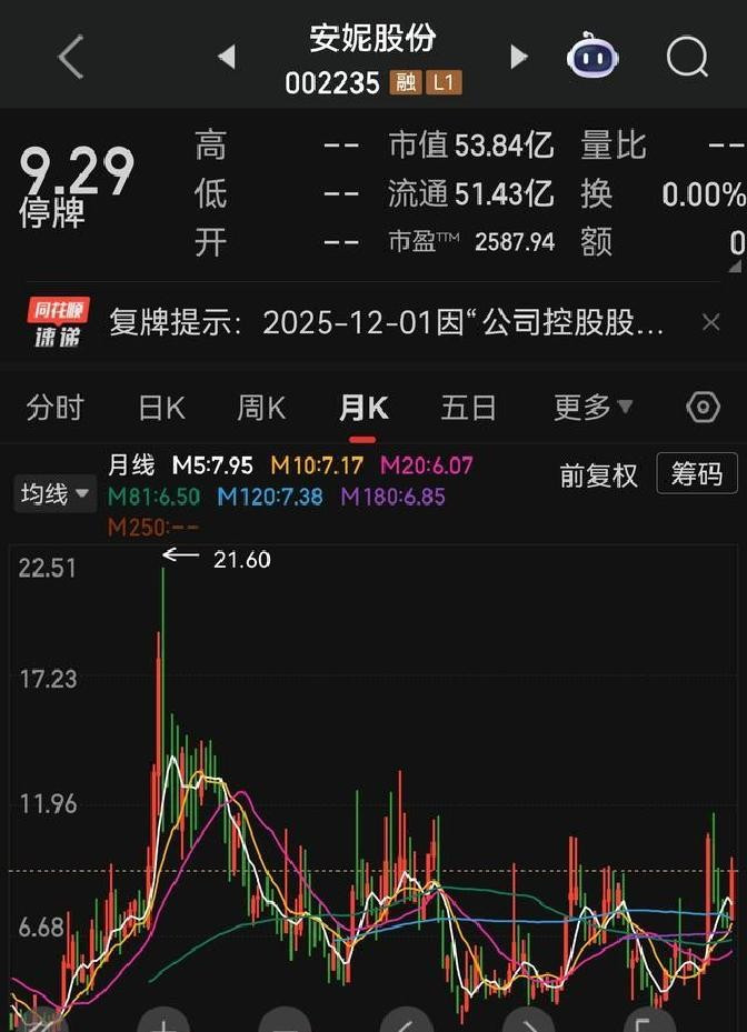 “跨年龙”是就是那种能从年尾一路飙到年初,涨得让你瞪大眼珠子的“妖股”。它不光要涨得猛,还得有故事,有看头,能吊足大家的胃口。安妮股份呢,市值也就50多亿,个头不大,却把“福建概念”、“重组利好”、“AI+机器人”这些热门标签一锅端了。再加上周一开盘前那出“紧急停牌”的戏码,一下子就成了万众瞩目的焦点。